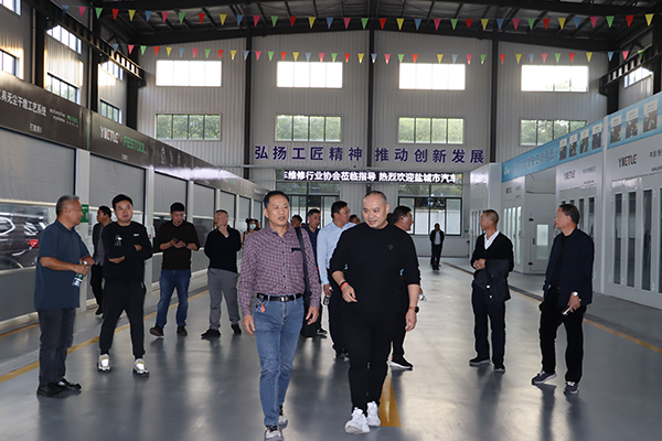 在无锡市诚康汽车服务有限公司实地参观和座谈交流时,主要围绕“集约建设,共享治污”“弘扬工匠精神,推动创新发展”主题,从钣金喷涂项目、汽修发展方向、地理位置与总体布局、生产工艺、环境保护、安全生产、技能技术、职业健康等方面开展分析探讨、交流互鉴,引领汽车行业集中式、节约化、环保型发展,达成汽修修业绿色智能创新发展共识。