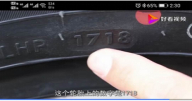 2.检查轮胎,看一下轮胎有没有特别明显的磨损,这个肉眼都是可以看出来的,然后细心的您再检查一下轮胎的生产日期,和汽车的生产日期比对一下,如果距离的时间特别长,那就要注意了。我找了张图,轮胎的生产日期就是最后的这4位数1718, 这4位数是代表轮胎是2018年第17周生产的。